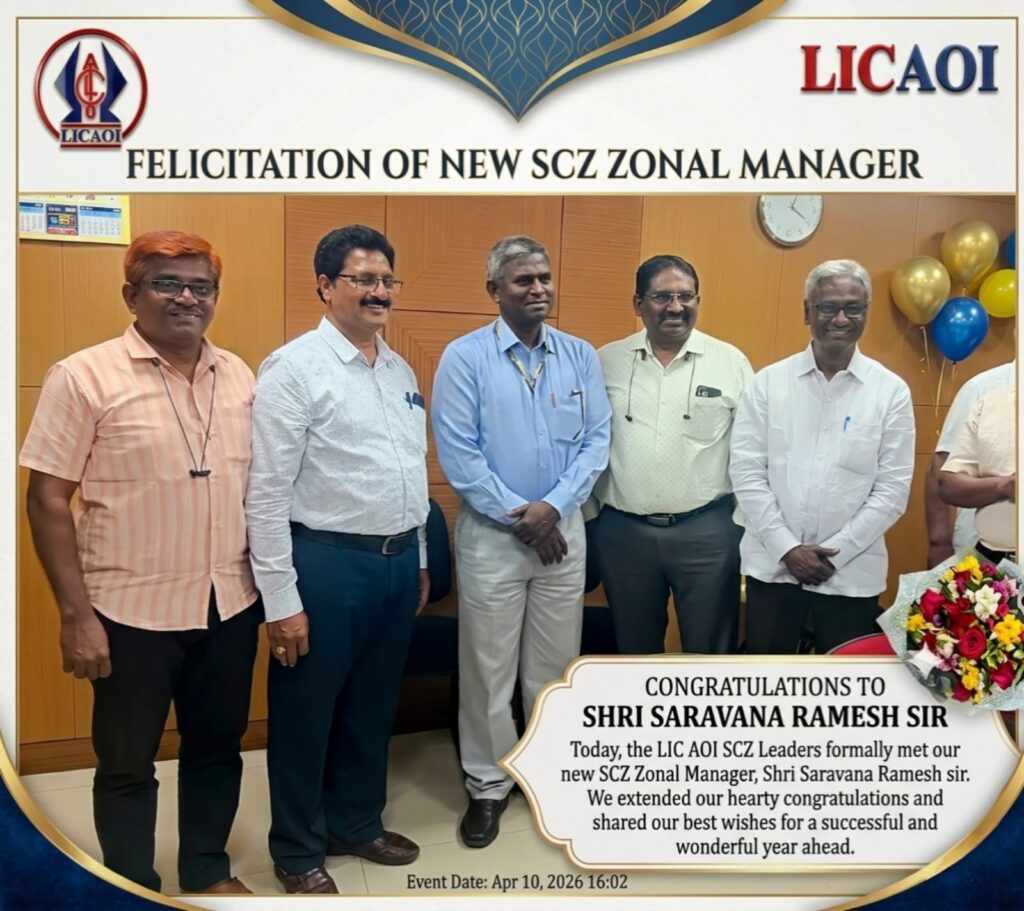 LICAOI -SCZ ఆఫీస్ బీరర్స్ ఈ రోజు మన నూతన జోనల్ మేనేజర్ శ్రీ శరవణ రమేష్ గారిని మర్యాదపూర్వకంగా కలిసి అభినందనలు తెలియచేయడమైనది.