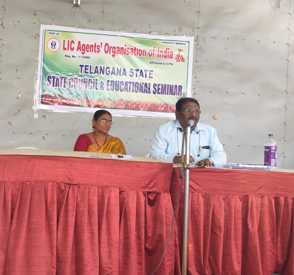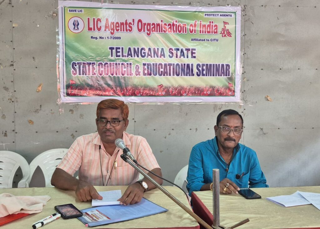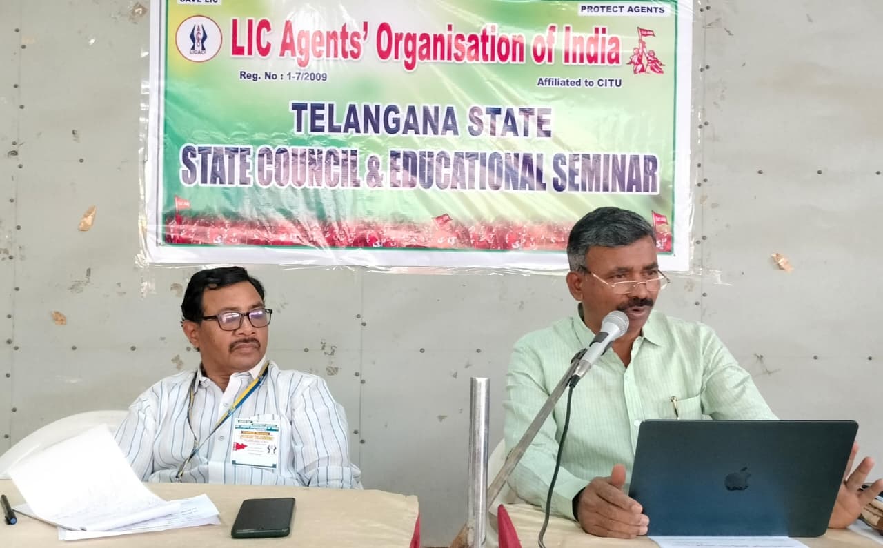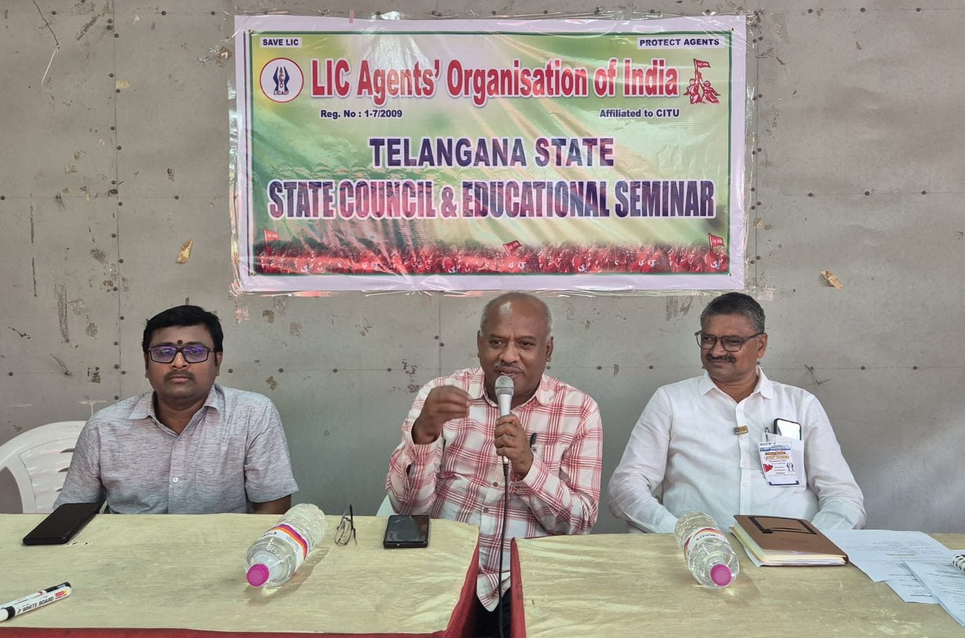 CITU National Secretary Sri K. N. Umeah, AOI All India Working President Com. L. Manjunath, AIIEA-SCZ Jt. Secretary Com. G. Thirupathayya, SCZ General Secretary Com. PLN Rao, President B. Jayarama, CITU Telangana State Secretary Com. J. Venkatesh, B. Venkata Rao, Krishna Reddy, and others conducting classes during the State Study Classes held in Telangana State on the 11th and 12th April, 2026.